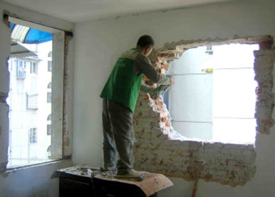 三:公司安排敲墻師傅、準備拆除專用工具,在約定時間達到,開始施工拆除敲墻作業(yè)。